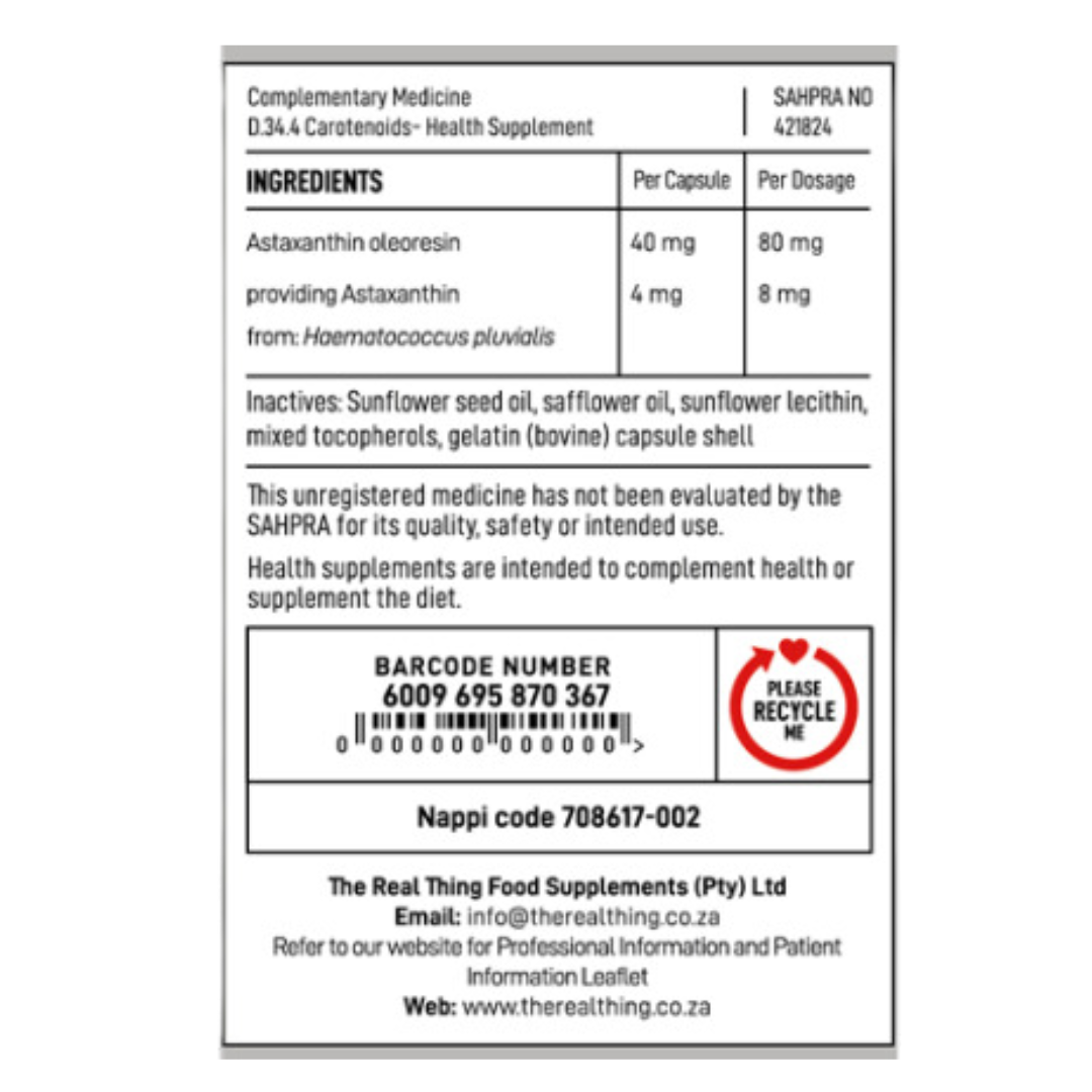 CONTENTS PER CAPSULE: Astaxanthin oleoresin 40mg, Astaxanthin 4mg.